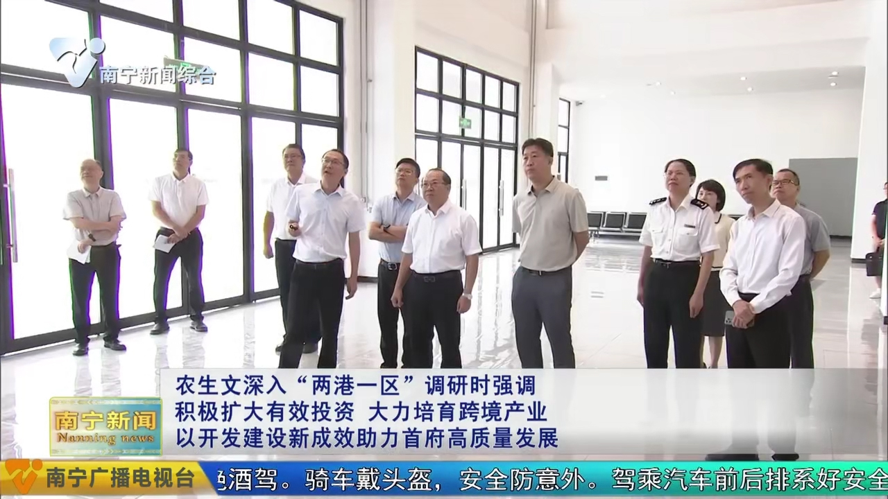 7月8日,自治區(qū)黨委常委、市委書記農(nóng)生文到“兩港一區(qū)”調(diào)研開發(fā)建設情況,強調(diào)要深入貫徹落實習近平總書記關于對外開放的重要論述和關于廣西工作論述的重要要求,進一步樹牢開放發(fā)展理念,堅持貿(mào)易先行、貿(mào)工結合、以貿(mào)促工,充分發(fā)揮空港、鐵路港、公路港協(xié)同聯(lián)動和綜合保稅區(qū)政策優(yōu)勢,積極擴大有效投資,暢通跨境物流通道,大力培育跨境產(chǎn)業(yè),不斷開創(chuàng)“兩港一區(qū)”開發(fā)建設新局面,為加快建設面向東盟開放合作的國際化大都市注入強勁動力。